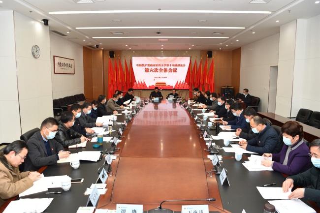 1月19日下午,校党委在德馨楼A218会议室召开十六届六次全委会,审议2020年党委工作报告和纪委工作报告。党委常委王长青、沈洪兵、石金楼、王瑞新、鲁翔、李建清、马水清、徐珊、丁强、沈瑞林,以及全体党委委员出席会议,全体纪委委员列席会议。会议由党委书记王长青同志主持。
