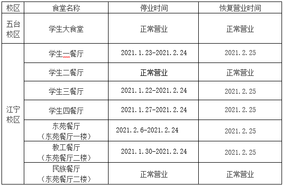 二、食堂寒假营业安排