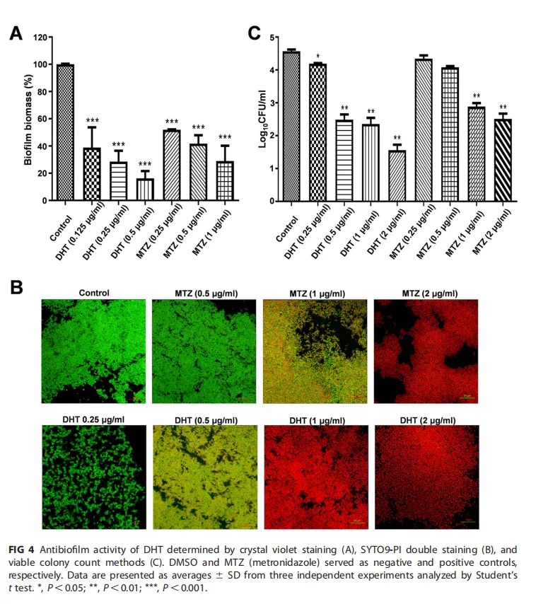 研究团队发现,从丹参中提取的二氢丹参酮I在杀灭幽门螺杆菌的时候,不仅可以破坏生物膜,同时可以杀灭附着在生物膜上的细菌,可谓是起到“连根拔起”的作用。