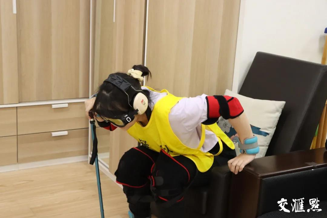 在手腕、脚踝处负重,你可以感受到当老年人迈步、抬手时面临的困难。体验者的膝关节、肘关节处也被负重捆绑,手肘、膝盖始终只能保持微微弯曲的状态,行动变得更加困难。