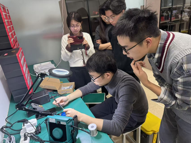 “医工交叉卓越工程师实训基地”首期冬令营于1月15日至31日举行。来自多个专业的学员在17天的高强度实训中,依托“基础筑基+项目实战”的阶梯培养体系,完成了从焊接、编程到完整项目开发的系统训练。初阶项目“智慧电子钟”与中阶项目“指尖血氧测试仪”不仅锻炼了学生的工程实践能力,更推动其形成了“问题—原理—验证—优化”的系统工程思维,实现了从理论到实战的能力跃升。