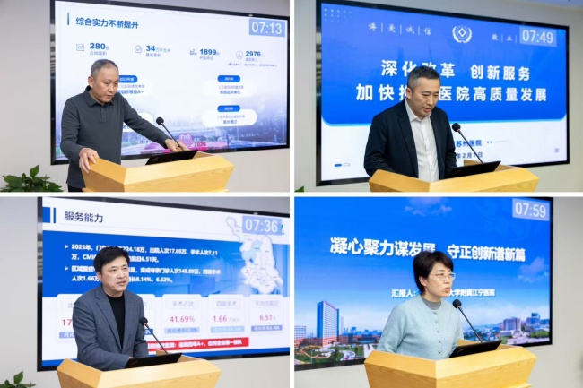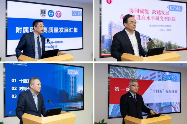 会上,各附属医院围绕“十四五”建设成效、发展对标分析、“十五五”发展思路和重点举措等内容作了专题汇报。