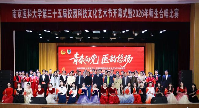4月20日晚,我校第三十五届校园科技文化艺术节开幕式暨2026年师生合唱比赛在江宁校区大学生活动中心举办。校党委书记兰青,校党委常委、副校长沈瑞林,校外评委嘉宾,校党委办公室、党委宣传部、工会、学生工作部及各学院负责人,团干部和学生代表1400余人参与活动。